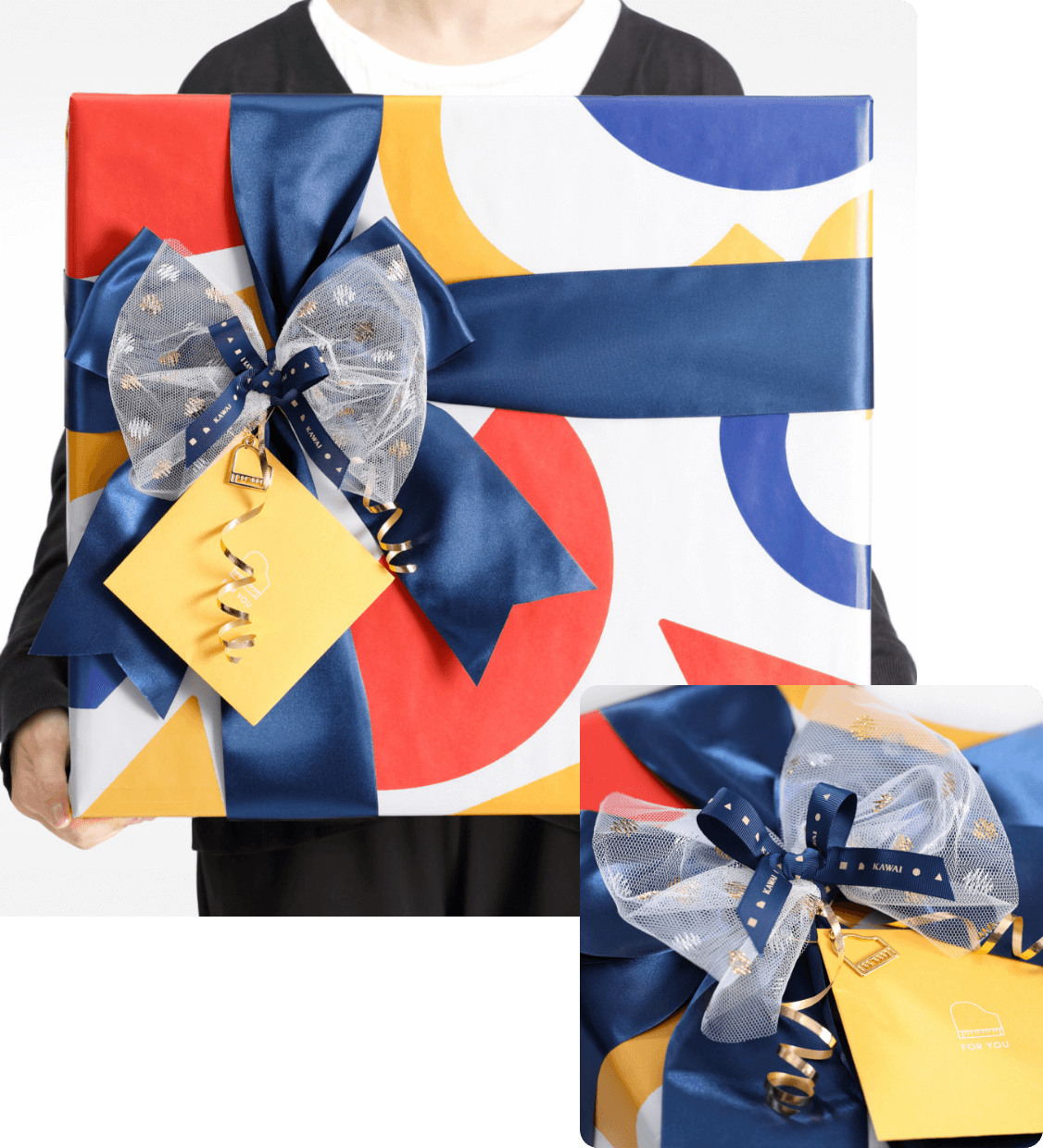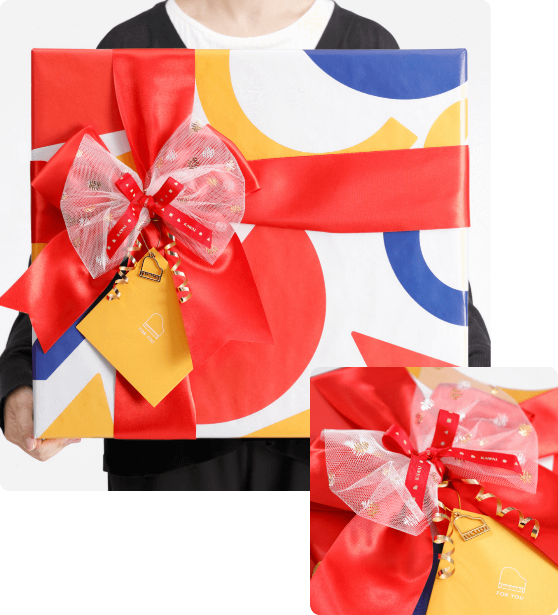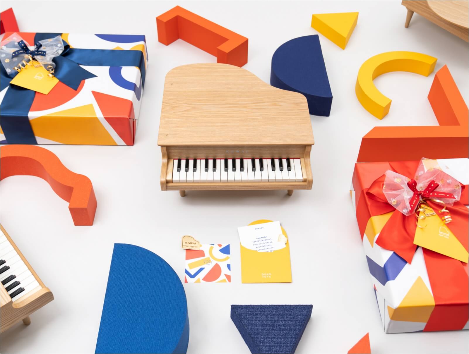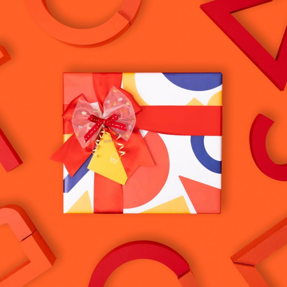 REDKAWAI TOYSのロゴをアレンジして作られた、公式オリジナルデザインの包装紙です。さまざまな形と色の図柄が、プレゼントを開ける瞬間のワクワク感をより一層演出いたします。